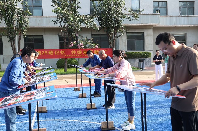 “拼接25載記憶,共繪未來新篇”,在生活區籃球場上舉辦的慶祝河冶科技成立25周年回憶照片拼圖比賽,讓一幅幅生動的照片講述了公司25年的精彩歷程,老員工們在拼圖中回憶著自己奮斗的青春歲月,新員工們在拼圖中了解著公司的成長經歷。